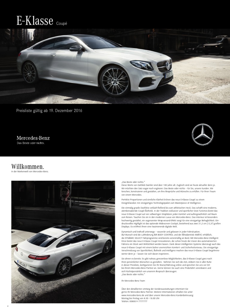 E Klasse Coupe Preislisten Mercedes Benz Service